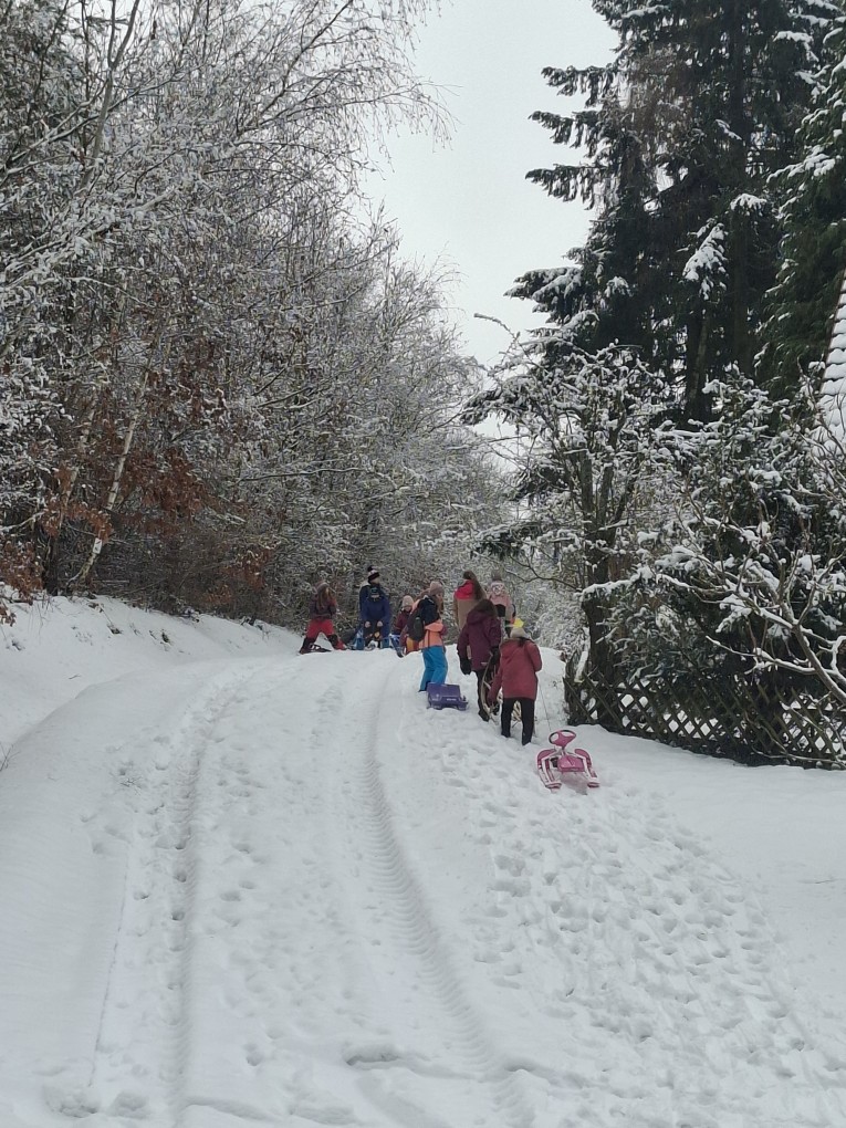 Schön, dass die Kinder auch von den Eltern mit Schneekleidung und Schlitten ausgestattet wurden. Es waren bestimmt Sportstunden, die in Erinnerung bleiben.