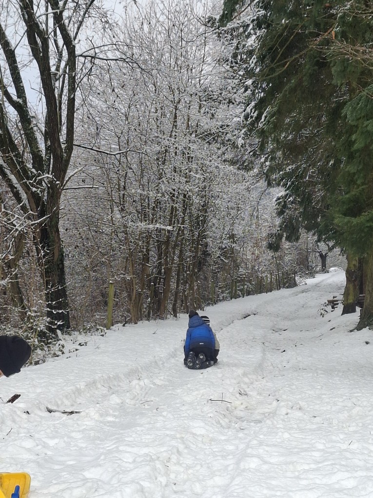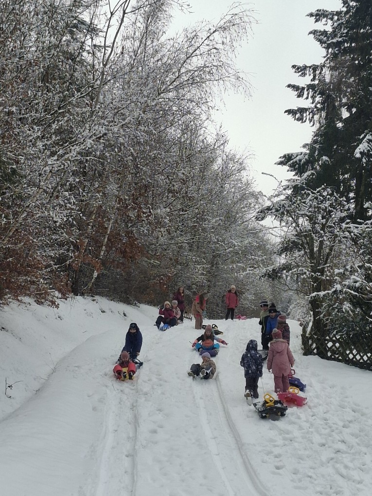 Schön, dass die Kinder auch von den Eltern mit Schneekleidung und Schlitten ausgestattet wurden. Es waren bestimmt Sportstunden, die in Erinnerung bleiben.